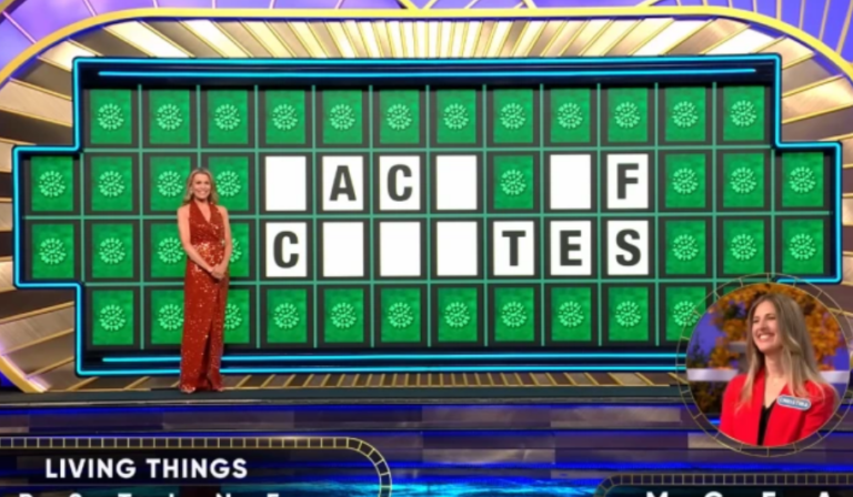 During regular gameplay, Derevjanik secured the highly sought-after Million Dollar Wedge and successfully carried it into the bonus round. Before spinning the final wheel, she lightheartedly mentioned the possibility of making big life changes if luck was on her side. In the bonus round category, “Living Things,” the standard letters R, S, T, L, N, and E were revealed, after which she selected M, C, F, and A. The puzzle board displayed enough letters to make the solution within reach.