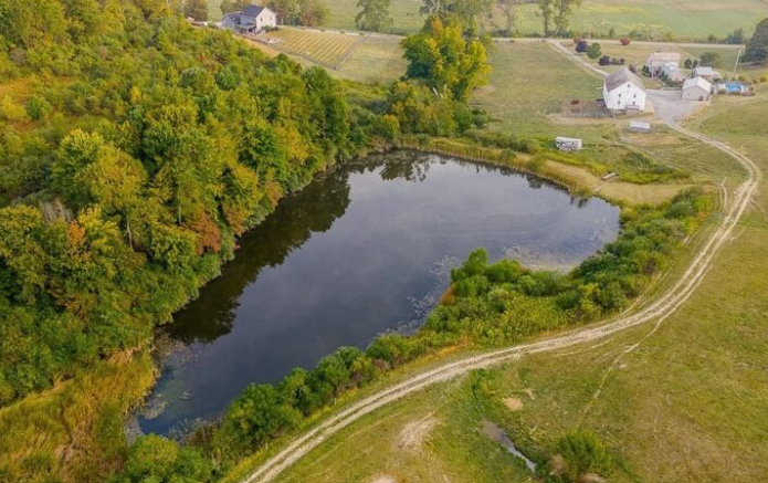 The land includes fenced pastures, hay fields, paddocks, and a 1.5-acre pond. An upper ridge provides wide views and potential space for future development. With a mix of farmland, open space, and long-standing features, the property supports a range of uses such as livestock care, gardening, or long-term residence. The farm is scheduled to be offered at absolute auction, both online and on-site, beginning October 21, 2025, with no minimum bid.